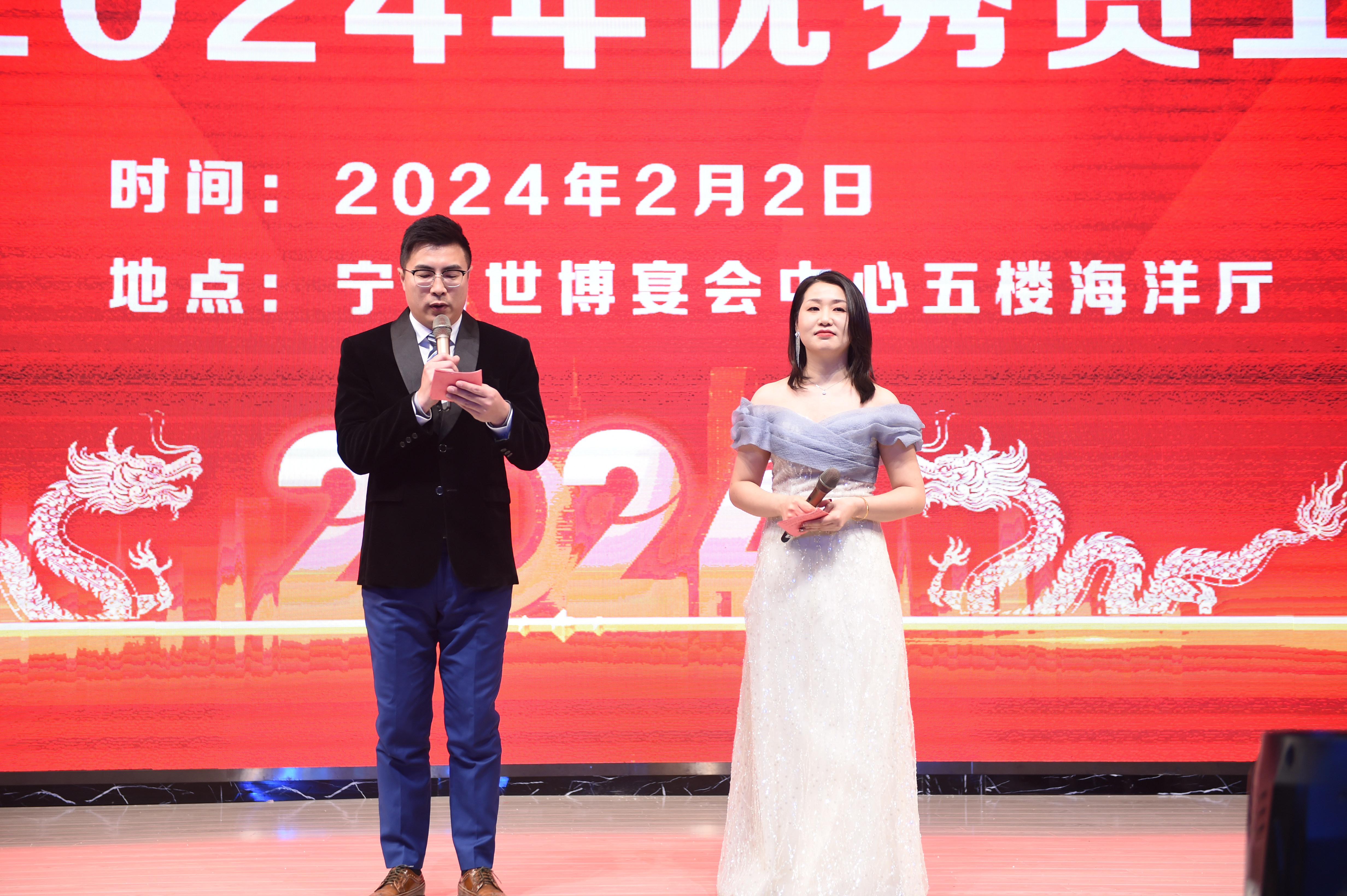 龍騰虎躍慶盛事,馬到功成事業(yè)興,安徽瑞普橡塑有限公司年會由國際貿(mào)易部經(jīng)理和人力資源部經(jīng)理擔任主持人,瑞普2024年會在倆位主持人簡單而又大氣的開場白下正式拉開序幕。