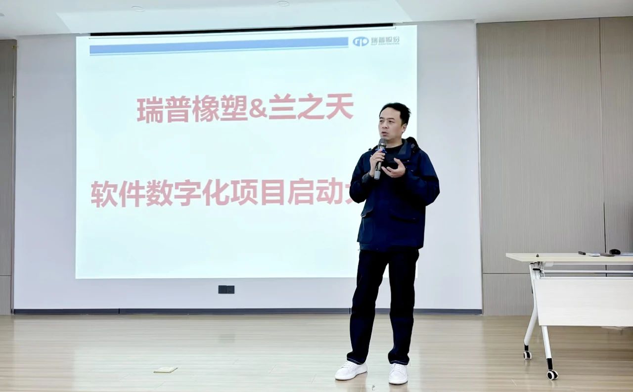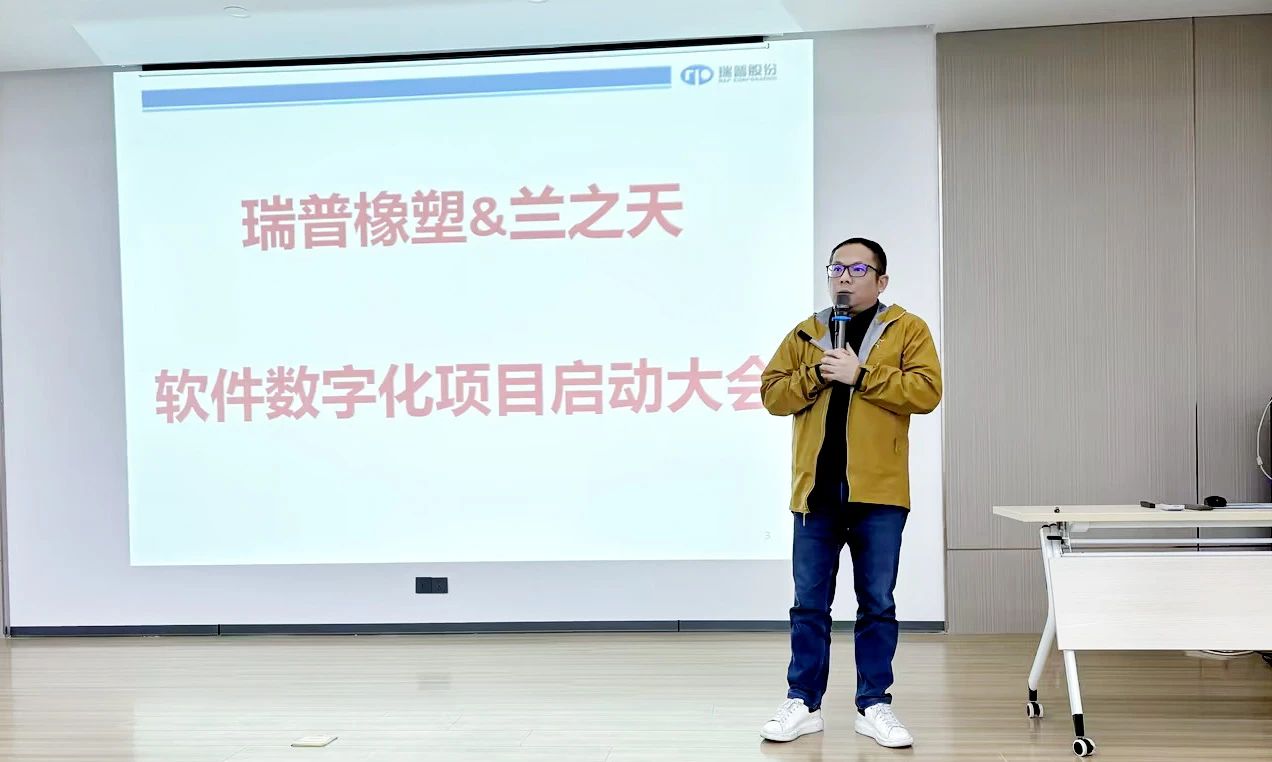 瑞普橡塑常務(wù)副總馬廣豐在發(fā)言中回顧了企業(yè)在數(shù)字化探索道路上的過往歷程,感慨萬千。他坦言,老舊的ERP系統(tǒng)已無法滿足企業(yè)日益增長的管理和運營需求。此次與蘭之天的合作,是瑞普橡塑數(shù)字化轉(zhuǎn)型的關(guān)鍵一步,也是企業(yè)實現(xiàn)智能化、數(shù)字化的重要契機。他要求全體員工以飽滿的熱情和堅定的信心,積極參與到數(shù)字化轉(zhuǎn)型的偉大實踐中去,共同為瑞普橡塑的美好未來貢獻力量。